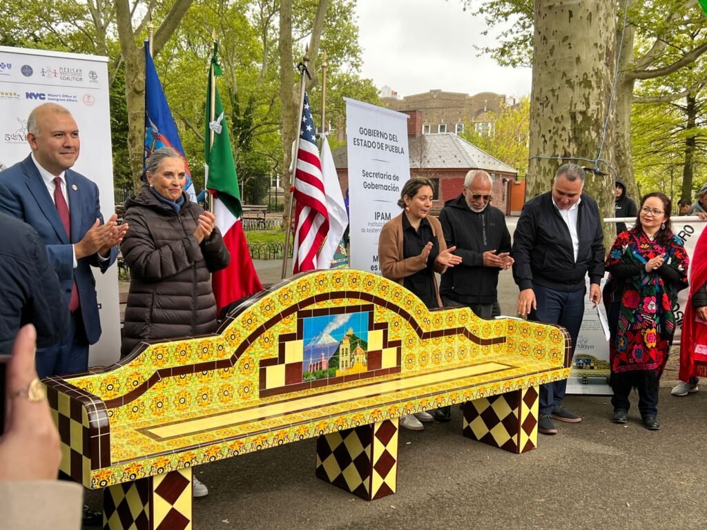 En Brooklyn, Nueva York, se realizó la revelación de la pieza “Banca del Cinco de Mayo”, una réplica de las bancas que se encuentran en el Parque Colón del municipio de Atlixco, elaborada por el artesano atlixquense, Juan Manuel Caltenco. Esta banca se erige como un ícono de la Batalla de Puebla y sirve como un recordatorio tangible de la historia y la cultura mexicana en tierras extranjeras.