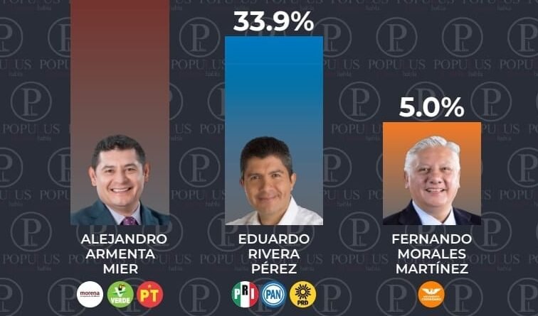 A mitad de las campañas proselitistas en Puebla, los resultados de las encuestas levantadas por Populus Mx revelan una contundente ventaja para Alejandro Armenta, candidato destacado en la contienda electoral. Según los datos recabados, Armenta mantenía una ventaja de 20 puntos sobre su más cercano competidor, Eduardo Rivera del PRIAN, y más de 40 puntos sobre Fernando Morales, candidato de Movimiento Ciudadano.