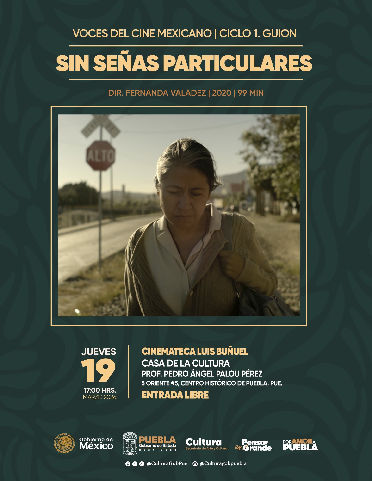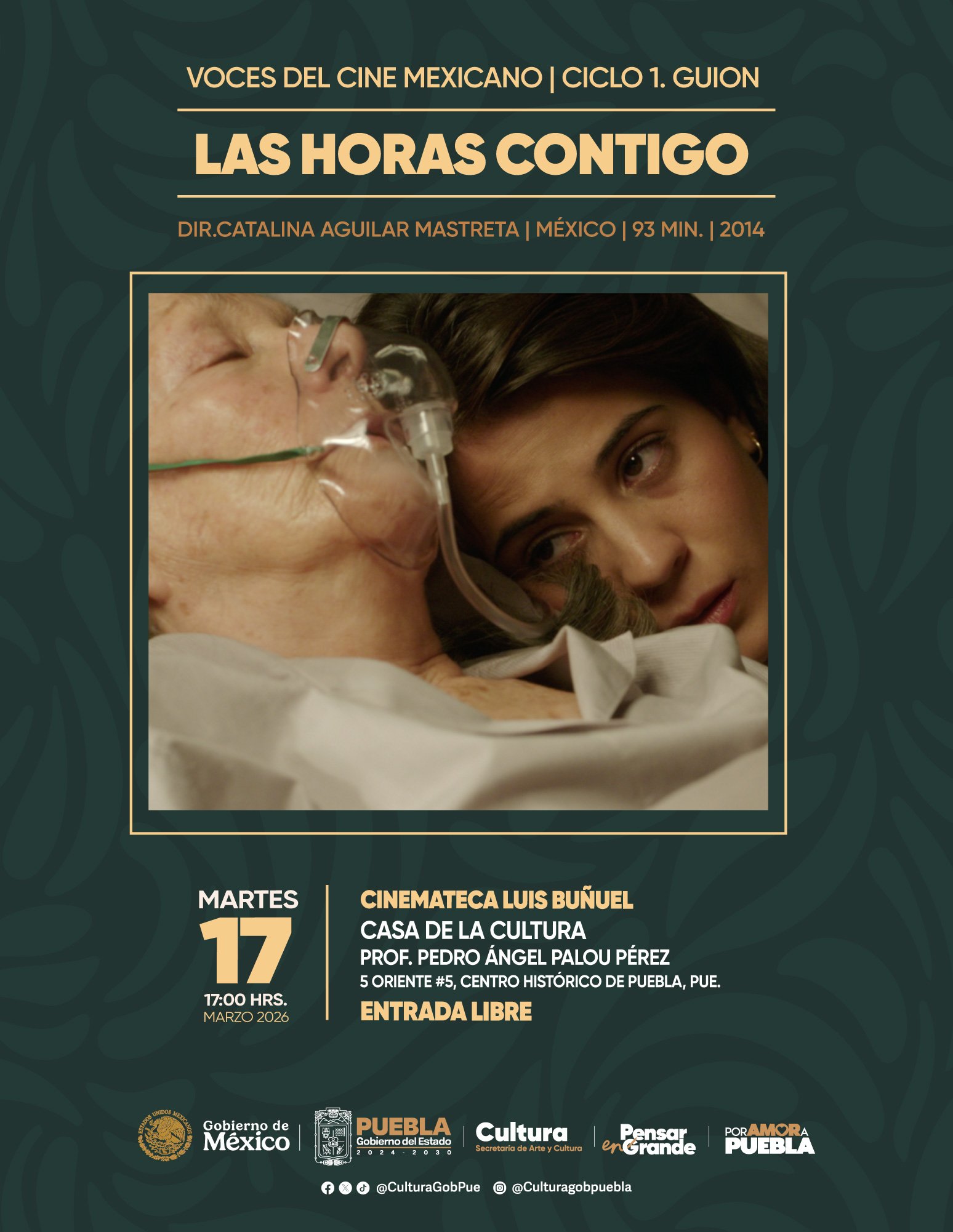 La Secretaría de Arte y Cultura informará los horarios de las proyecciones y la programación de los siguientes ciclos en las páginas de Facebook “Secretaría de Cultura Puebla” y “Cinemateca Luis Buñuel Puebla”. La entrada a todas las funciones es gratuita.