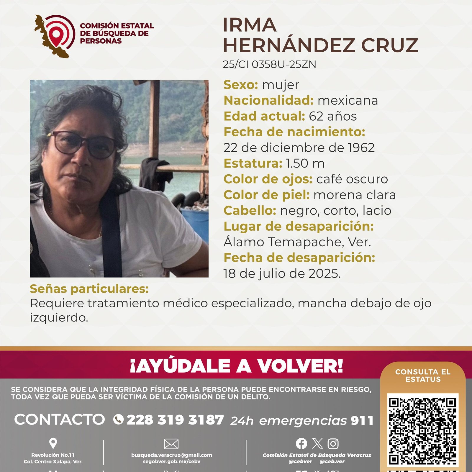 Tras una intensa búsqueda, este 24 de julio la FGE informó que el cuerpo de Irma fue localizado en el municipio de Álamo Temapache, tras labores de inteligencia y trabajo de campo. El hallazgo fue confirmado mediante peritajes forenses, y la familia de la víctima ya fue notificada.