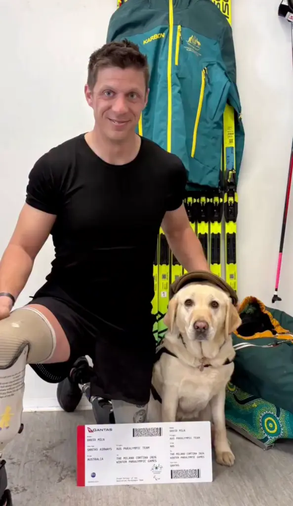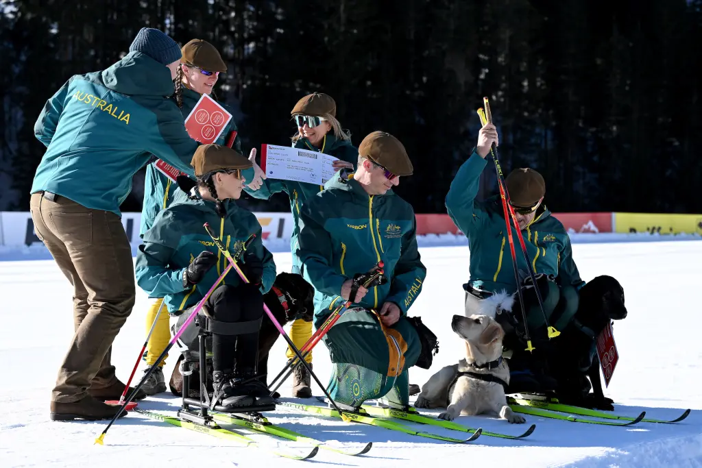 La delegación australiana destaca por su numeroso equipo canino. Atletas como Taryn Dickens (biatlón) y Dave Miln cuentan con el apoyo de Gigi y Suki, respectivamente. Ambos perros provienen de programas de entrenamiento para veteranos de guerra y están especializados en asistencia para la movilidad y manejo de síntomas de trastorno de estrés postraumático (TEPT).