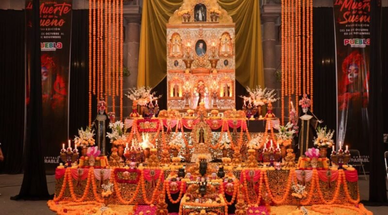Puebla, Pue., 04 noviembre de 2025. — La ofrenda instalada en el Palacio Municipal destacó como uno de los espacios más visitados del Corredor de Ofrendas 2025, al atraer a miles de personas que disfrutaron de su diseño, simbolismo y homenaje a las tradiciones durante el festival “La Muerte es un Sueño” que organizó el Gobierno de la Ciudad que preside Pepe Chedraui, a través del Instituto Municipal de Arte y Cultura de Puebla (IMACP).