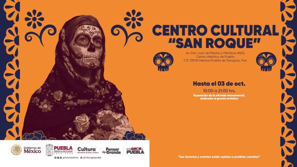 En el patio central de la Casa de la Cultura “Prof. Pedro Ángel Palou Pérez”, ubicada en la calle 5 Oriente No. 5, las y los asistentes podrán visitar hasta el 3 de noviembre, la Exposición de la ofrenda monumental dedicada a las Mujeres Indígenas. Y en el Centro Cultural “San Roque”, ubicado en Av. Don Juan de Palafox y Mendoza No. 605, estará la Exposición de la ofrenda monumental dedicada al gremio artístico.