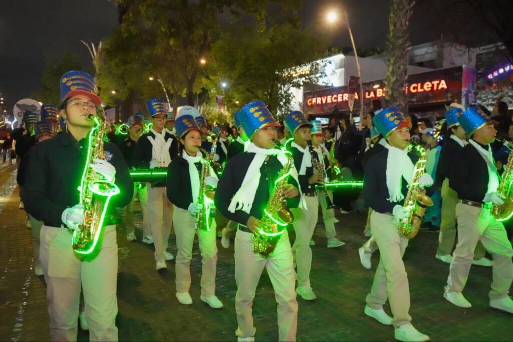 El desfile dio inicio a las 6:30 de la tarde con un espectacular show de 40 drones que durante 10 minutos surcó el cielo poblano sobre la Avenida Juárez, a la altura de la 25 sur, lo que marcó el arranque del recorrido. Posteriormente, avanzaron los contingentes integrados por bandas de música, carros alegóricos, botargas y medios de comunicación, regalando sonrisas y momentos de ilusión a las y los asistentes que se dieron cita a lo largo de la Avenida Juárez, continuando por la Avenida Reforma–Juan de Palafox y Mendoza, hasta la 4 norte-sur.