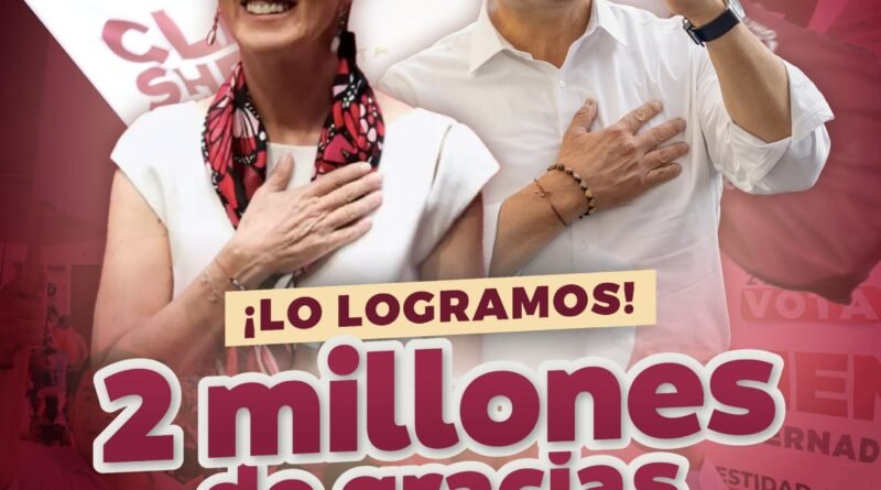 Asimismo, refirió que hasta el corte preliminar del Programa de Resultados Preliminares (PREP), casi se cumplió con la meta de de dos millones de votos a favor de Claudia Sheinbaum, porque ya se tenia registrado cerca de un millón 900 mil votos en el estado.