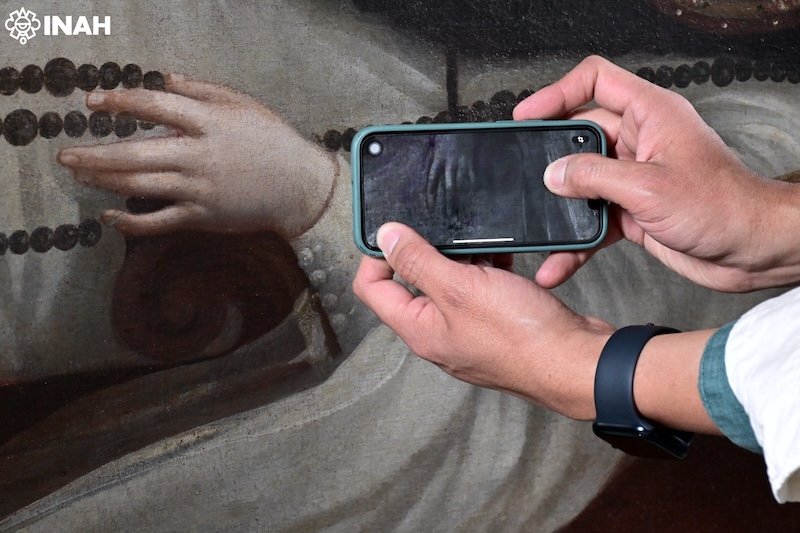Mediante el uso de equipos portátiles de fluorescencia de rayos X y luz ultravioleta, el equipo liderado por el restaurador Nathael Cano Baca analizó la composición elemental de los pigmentos, colorantes y aglutinantes, sin tocar la superficie de la obra.