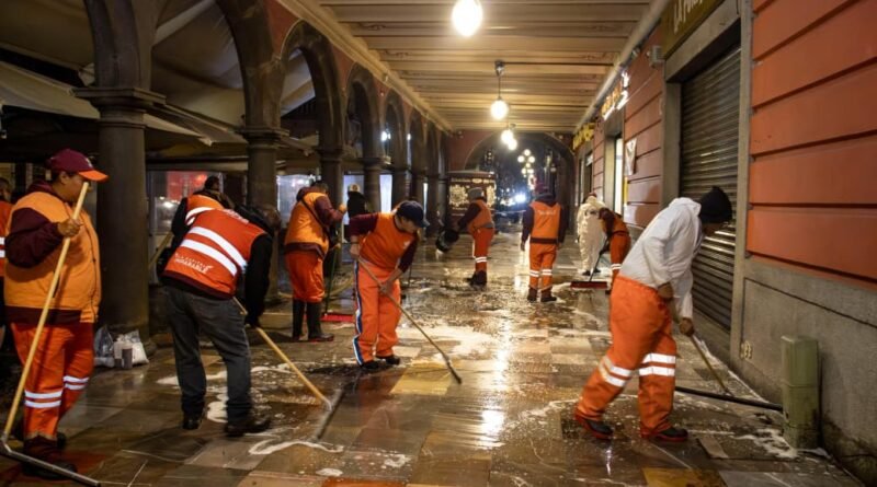 Puebla. Pue., 10 de abril de 2026.- Por instrucciones del presidente municipal, Pepe Chedraui, el Gobierno de la Ciudad, a través del Organismo Operador del Servicio de Limpia, realizó el lavado integral de los portales Hidalgo, Morelos e Iturbide, que rodean el Zócalo de Puebla, como parte de una estrategia para dignificar y realzar la imagen del corazón de la capital.