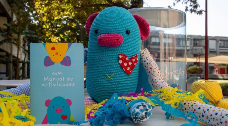 Con Emotka, todo gira en torno a los abrazos. El embalaje cilíndrico está pensado para que las infancias entren en contacto con él desde el primer contacto visual. El diseño suave de los muñecos combina diferentes texturas para brindar confort, mientras que los brazos largos están diseñados para que el peluche se enganche a su dueño, como un amigo que te acuerpa cuando tienes miedo o estás triste. Además, su diseño combina colores y formas que estimulan la creatividad.